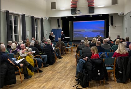 Många medlemmar som slutit upp till det årliga informationsmötet om föreningens ekonomi och budget, och andra aktuella frågor. Intresserade frågor och diskussioner blev det under kvällen. Sammantaget har vi givet en osäker omvärld en tämligen stabil finansiell ställning. Med det sagt så finns det en del moln på himmelen att hantera.